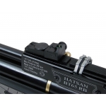 Hatsan BT65 - это самая мощная десяти зарядная PCP пневматика марки Hatsan . Модель имеет продольно скользящий затвор запирания ствола пневматической винтовки. Все модели винтовок оснащены ремнём, антабками (для крепления оружейного ремня), зарядным штуцером и двумя барабанами-клипами (на 10 пуль каждый). Наличие регулируемого ложа пневматического ружья особенно важно на соревнованиях по стрельбе или при длительной эксплуатации винтовки, не отрываясь от прицельной линии (на стационарной или засидной охоте с пневматикой на птицу, при её скрадывании). Ремень удобный и широкий, не натирает и не соскальзывает с плеча охотника, освобождая руки для выстрела из винтовки в подходящий момент. Пневматические винтовки Hatsan BT65 (на металлической ствольной коробке) имеют ласточкин хвост для крепления оптического прицела или других прицельных приспособлений. Винтовка имеет собственный открытый прицел. Нарезной стальной ствол имеет увеличенную, по сравнению с предыдущей моделью Hatsan at44-10, длину. Резервуар высокого давления Hatsan BT65 тоже увеличен. Перепуск Hatsan BT65 имеет больший диаметр нежели 44я модель. Соответственно мощность Hatsan BT65 значительно возросла и надёжность болтового взвода хорошо зарекомендовала себя на этой точной и совершенной пневматической винтовке магнум класса. Стрельба осуществляется исключительно тяжелыми пульками. Задувать резервуар винтовки можно насосом, особенно, если Вы охотитесь или стреляете без автомобиля. Купить Hatsan BT65 можно без лицензии и специального разрешения.Винтовка калибра 4.5 мм, давлением в резервуаре до 200 бар. Ложе изготовлено из композитного материала, устойчиво к воздействию окружающей среди. Дульная энергия 40 Дж.Регулируемый по длине затыльник и щека помогут учесть индивидуальные анатомические особенности стрелка.