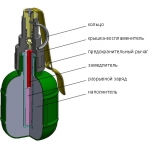 | Материал: | Граната состоит из пластикового корпуса и крышки-воспламенителя. Чека удерживает подпружиненный предохранительный рычаг и при ее выдергивании вызывает воспламенение замедлителя. Через 5 секунд детонирует разрывной заряд, корпус гранаты разрывается, и наполнитель разлетается вокруг. |