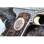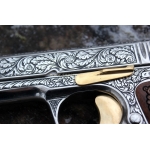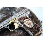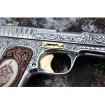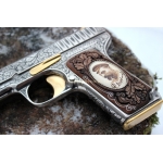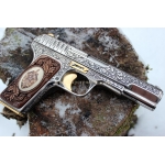 Очередной шедевр не обычный экземпляр подарочного пистолета Тульского Токарева ТТ в охолощенном схп варианте. Победный 1945 год! Нитрид титана, рукоятка орех, скрим шоу (резьба по кости) с гравировкой Феликса Эдмундовича Дзержинского. Под холостой патрон калибра 9х19 люгер.