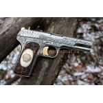 Легендарный охолощенный пистолет схп ТТ Тульский Токарев победного года 1945 в подарочном комплекте. Очередной шедевр от Тульских мастеров, шикарный охолощенный пистолет ТТ Тульский Токарев работающий на холостом патроне 9им. На ореховой рукоятке кость мамонта на кости скрим шоу (художественная резьба по кости). Портрет И.С Сталина в ободке из серебра. В подарочном комплекте с подарочной коробкой с стеклом можно повесить на стену.