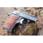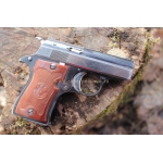 Красивый макет мини пистолета Star модель Starlet 6.35 мм. Миниатюрный карманный пистолет "Старлет" модели CU с алюминиевой рамой появился в 1956 году, придя на смену более ранней модели CO. Выпускался до 1973 года. Макет в отличном состоянии на одном номере в родном воронении. Разборка штатно взводится щелкает, диактив в рамка закона РФ. Пистолет «Стар» модель CU «Старлет» карманного типа под патрон 6,35x15,5. Автоматика пистолета работает за счет отдачи свободного затвора. Запирание канала ствола осуществляется массой кожуха-затвора и возвратной пружиной. Ударно-спусковой механизм куркового типа с открытым курком одинарного действия. Флажок предохранителя выведен на левую сторону рамки. Магазин коробчатого типа с однорядным расположением семи патронов. Кнопка защелки магазина расположена на левой стороне рукоятки у основания спусковой скобы. Прицельные приспособления открытого типа состоят из мушки и целика.