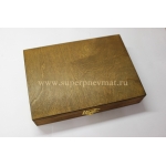 Не большая подарочная коробка из дуба, под не большое оружие, внешние габариты 23см длинна 17 см ширина, высота 5см. Внутри 21 см 14см. Отделана темно красным бархатом с мягкой подложкой. Отлично подходит для жилетных пистолетов всех марок и разновидностей, или для ПСМ или для ПМ .