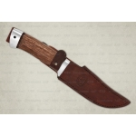 Средний универсальный легкий и прочный нож с клинком, имеющим популярный обушок «лещиком». Вогнутые линзовидные спуски от середины ширины клинка образуют тонкое прекрасно режущее лезвие. Демонстрирует отличные режущие качества. Толщина обуха в 2,4 мм позволяет оставить широкую голомень, что придает клинку дополнительную прочность. Рукоять эргономичной формы уверенно и прочно ложится в любую ладонь. А полноценная гарда не дает соскользнуть пальцам при резах от себя. Монтаж клинка сквозной не разборный. На навершине рукояти имеется отверстие под темляк. Отличный выбор для большинства видов работы в лесу.