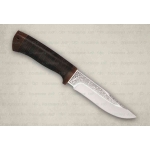 Солидный универсальный легкий и прочный нож с клинком классической формы, имеющим широкие вогнутые линзовидные спуски образующие тонкое прекрасно режущее лезвие. Демонстрирует отличные режущие качества. Поэтому в умелых руках становится весьма серьезным инструментом. Клинок с толщиной обуха в 2,4 мм имеет полноценную голомень, что придает ему дополнительную прочность. На нешироком фальшлезвии нанесена небольшая пилообразная заточка, которая позволяет надпиливать кости, хрящи или чистить чешую пойманной рыбы. Классическая форма рукояти подкупает: она удобна даже для большой руки уверенно и прочно ложится в любую ладонь. А оптимальной величины гарда не дает соскользнуть пальцам при резах от себя. Монтаж клинка сквозной не разборный. Отличный выбор для большинства видов работы в лесу. Имеет солидный отряд почитателей.