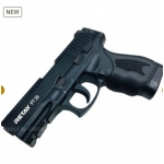 Известная турецкая компания-производитель Retay Arms занимается изготовлением превосходных охолощенных модификаций оружия. Рассматриваемая модель в точности копирует бразильский боевой пистолет Taurus 24/7. Охолощенный пистолет Retay PT 26 Taurus отлично подойдет не только для использования в качестве реквизита на съемках различных художественных фильмов, но и в роли средства для самообороны. Для ведения огня используются светошумовые патроны калибром 9 миллиметров (9 .P.A.K.). Стрельба боевыми патронами полностью исключена, чему способствует наличие внутри ствола металлических штифтов. Заряжаются патроны внутрь вместительного магазина в количестве 14 штук. К слову, магазин поставляется в стандартной комплектации, что значительно сэкономит время и денежные средства. Перед нажатием спускового крючка потребуется взвести УСМ. Стрельбу из оружия можно вести, как в полуавтоматическом, так и в автоматическом режиме. Так как в момент выстрела из ствола вырывается внушительное пламя, не рекомендуется направлять модель в лицо человека или животного для избегания получения серьезной травмы. Дополнительной подстраховкой для исключения непреднамеренного выстрела из пистолета охолощенного Ретэй ПТ 26 Таурус выступает предохранитель неавтоматического типа. На верхней стороне присутствуют стандартные прицельные приспособления открытого типа, выполненные в виде целика и мушки. Помимо этого, под стволом находится направляющая для монтажа ЛЦУ или фонарика. Еще одной приятной особенностью представленной модификации является возможность осуществления сборки и разборки. В первую очередь это потребуется для проведения очистки внутренних составляющих. При изготовлении используется высокопрочный сплав Zamak и легированная сталь. Каждый стальной элемент дополнительно обработан вороненным раствором, в целях защиты от появления коррозионных процессов. Благодаря использованию сплава, инженерам удалось значительно снизить итоговую массу конструкции. При длине пистолета СХП Retay PT 26 Taurus равной 175 мм, вес не превышает 785 грамм. Стандартный комплект поставки включает сам пистолет, магазин, шомпол, масленку, пластиковый кейс и краткую инструкцию по эксплуатации.