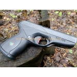 При выстреле отход затвора-кожуха назад тормозится давлением пороховых газов, которое падает, когда пуля покидает канал ствола. После чего затвор-кожух отходит назад, выбрасывает стреляную гильзу и досылает в патронник следующий патрон. Ударно-спусковой механизм куркового типа, только самовзводный, со скрытым расположением курка. Двухсторонняя защелка магазина расположена в основании спусковой скобы. Имеется два типа двухрядных магазинов – с емкостью 13 и 12 патронов, отличающиеся величиной их крышки. Прицельные приспособления не регулируемые. Боковые поправки могут вноситься только при помощи смещения мушки, закрепленной в пазе типа «ласточкин хвост». Рама, спусковой крючок, клавиша флажкового предохранителя и тыльная часть затвора-кожуха изготавливаются из полимера. Благодаря эргономичной рукоятке оружие удобно в удержании и хорошо контролируется при стрельбе.