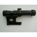 Прицел ПУ СВТ. Выпущен Ленинградским заводом №357 НКВ ("Прогресс") в 1942 году.Предназначается для винтовки Мосина 91/30. Прицел имеет оригинальное, чуть-чуть шлифованное покрытие и отменный внешний вид. Оптика и механика идеальны. Поставляется с оригинальным кронштейном производства Ижевского завода. Прицел и кронштейн пристреляны в условиях арсенала, о чем свидетельствует общая риска на прицеле и кронштейне, а так же номер прицела, выполненный электрографическим карандашом на кронштейне.Прицел пу идет в комплекте с оригинальными защитными кожанным колпачками.