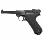 «Люгер», «Парабеллум», P08, Parabellum – основной пистолет германской армии во время Первой и Второй мировых войн. Он был разработан Георгом Люгером в 1898 г. В основе принципа действия пистолета лежит рычажная система запирания затвора, разработанная чуть ранее конструктором Хуго Борхарда. Люгер усовершенствовал его идею и сделал саму конструкцию более компактной. Пистолет «Люгер» хоть и отличался довольно сложной конструкцией, обладал отличной точностью стрельбы. Во многом благодаря удобной рукояти, обеспечивающей комфортный хват. Название Parabellum происходит от латинского выражения Si vis pacem, Para bellum (Хочешь мира, готовься к войне). Пистолет пневматический Gletcher Parabellum является точным воспроизведением внешнего вида и характеристик легендарного «парабеллума». «Анатомическая» рукоять имеет большой угол наклона и легкий спуск (как и у огнестрельного оригинала). Скрытый поджимной винт баллона обеспечивает большую визуальную схожесть с оригиналом. Воспроизведена оригинальная система запирания затвора при помощи системы рычагов. Gletcher Parabellum имеет полноразмерный магазин, действующую затворную задержку, ударно-спусковой механизм одинарного действия. Главная особенность данной модели дейсвующая затворная задержка!