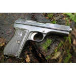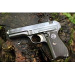 Редкий охолощенный пистолет Чезет Vz.27 (CZ 27). В коллекцию самый раз на одном номере в родном воронении. Работает на холостом патроне 7.65 мм Браунинг.Пистолет отстрелян автоматика работает отлично. Вместимость магазина 8 патронов. Пистолет CZ 27 (так же известный под обозначением Vz.27, то есть Vzor – модель) появился в 1927 году, в результате работы Франтишека Мышки по упрощению конструкции своей предыдущей модели CZ 24. Теперь оружие работало по схеме использования отдачи при свободном затворе, а вместо патрона 9mm Short в нем применялся 7,65mm Browning. Внешними отличиями являлись плоские боковые грани и вертикальные насечки кожуха-затвора. Автоматика работает по схеме использования отдачи при свободном затворе. Крепление ствола осуществляется сухарным способом. Ударно-спусковой механизм курковый, одинарного действия. Усилие спуска составляет около 1,9 кг. при достаточно плавной работе и коротком возвратном ходе. Пистолет оснащен ручным предохранителем, рычаг включения которого расположен за спусковым крючком, с левой стороны рамы, а под рычагом размещается кнопка выключения предохранителя. Для включения необходимо перевести рычаг предохранителя в нижнее положение, в котором он фиксируется. Выключается предохранитель нажатием кнопки. При этом рычаг освобождается и под действием пружины возвращается в исходное положение.