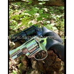 Бульдог – это надежный револьвер со стальным стволом и барабаном. При длине 183 мм и высоте 143 мм, вес револьвера составляет незначительные 740 г. Для облегчения веса рамка и кожух ствола выполнены из сплава ZAMAK 5.Внешне Бульдог напоминает строгие классические револьверы Smith&Wesson. А если на него установить деревянную рукоять, то вы получите еще больше эстетического удовольствия от его брутальности.Технические характеристики: Стальной барабан вмещает 6 патронов (строительных) и 6 резиновых шариков. Энергия для метания резиновых шаров Бульдог используется от монтажных патронов калибра 5,6/16. Рекомендованы к использованию патроны только с латунной гильзой производства Курс-с. Диаметр шаров 10 мм при весе 0,7 грамма.Скорость до 200 м\с