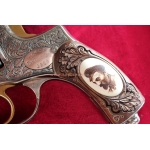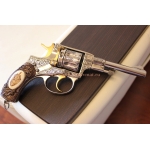 Можно сказать произведение искусства охолощенный револьвер от Тульского оружейного завода под холостой патрон 9х19 люгер.Списанное и охолощенное оружие переделывается (охолащивается) с боевого.Образец 1923 года с клеймом р.с.ф.с.р,на одних номерах.Отличный коллекционный охолощенный револьвер стреляющий холостым патроном.Ручная работа художественная гравировка, рукоятка резная орех,всечка серебра и кость с скрим-шоу (гравировка на кости).Отличный подарок любителям оружия с историей!