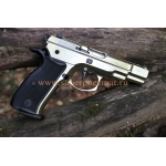 Списанный охолощенный пистолет Чизет в хроме под холостой патрон 10тк. Охолощенный СХП пистолет в исполнении хром Z75-СО – это модификация, предназначенная для имитации стрельбы патронами светозвукового действия. Боевым прототипом является известный пистолет чешского производства, сочетающий отличные боевые и эксплуатационные характеристики. По сути, пистолет был гармоничным сочетанием новых идей и проверенных временем конструктивных решений. В 1975 году была произведена первая партия CZ 75, для нужд армии Чехословакии и стран Варшавского договора. Модификация экспортировалась в страны Европы и в США, также лицензия на его производство была продана итальянцам и швейцарцам. Охолощенный со Z75-СО деактивирован на заводе Курс-С, и доступен для покупки без наличия лицензий и разрешений, для всех совершеннолетних граждан. Элементы управления пистолета аналогичны боевому прототипу. Магазин вмещает 9 холостых патронов 10ТК, имитирует выстрелы одиночными – после выстрела затвор сдвигается, патрон заходит в патронник и взводится курок т.е автоматика работает как на боевом аналоге. После отстрела всех холостых патронов встет на затворную здержку. За счет простоты разборки упрощается процесс ухода за оружием. Так как при выстреле из ствола появляется пламя, следует проявлять осторожность при использовании пистолета и не направлять его на людей или животных. Имеется не автоматический предохранитель.